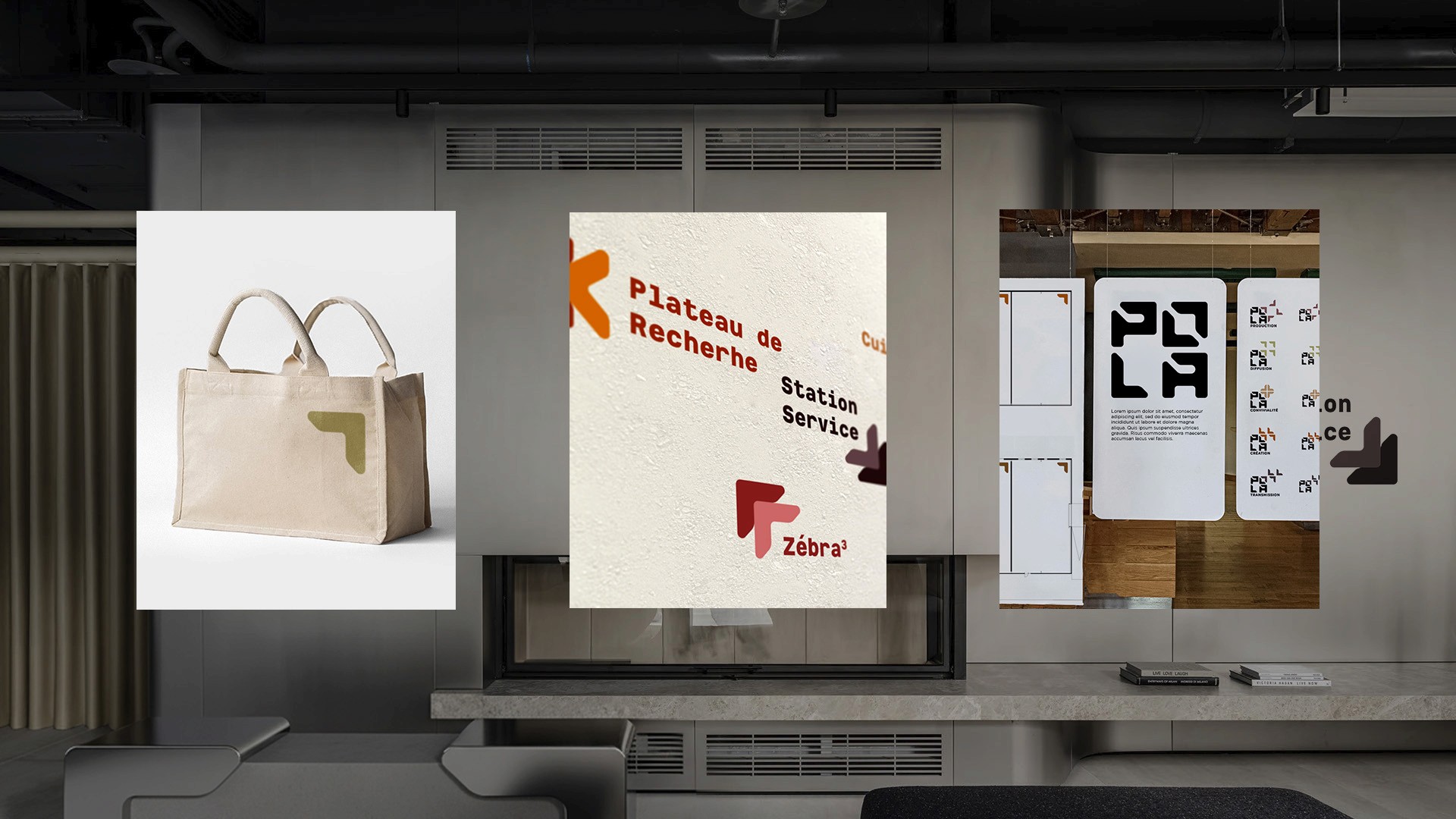 Situé au cœur de la Fabrique POLA à Bordeaux, un système de branding brut fondé sur une grille modulaire.