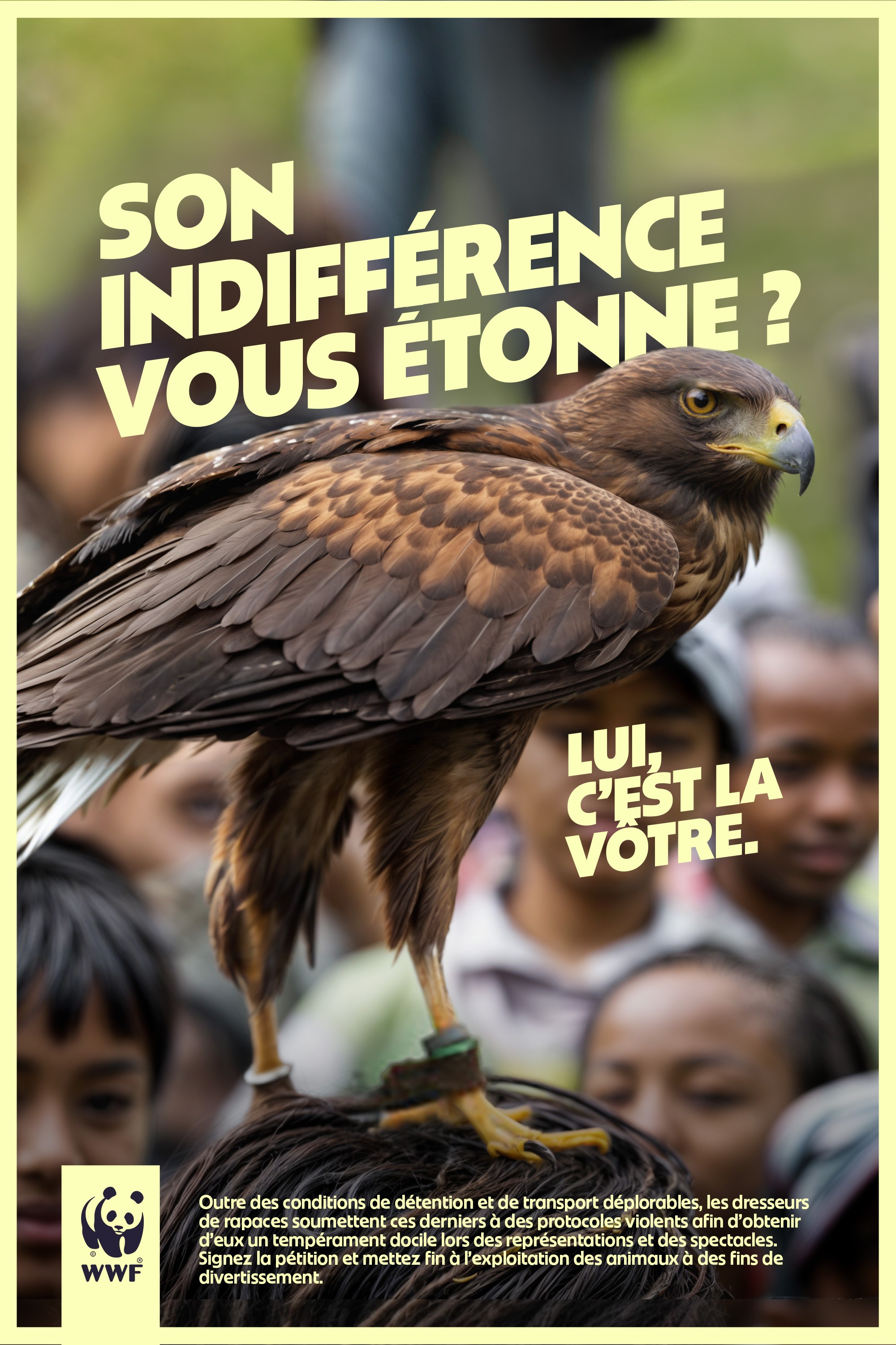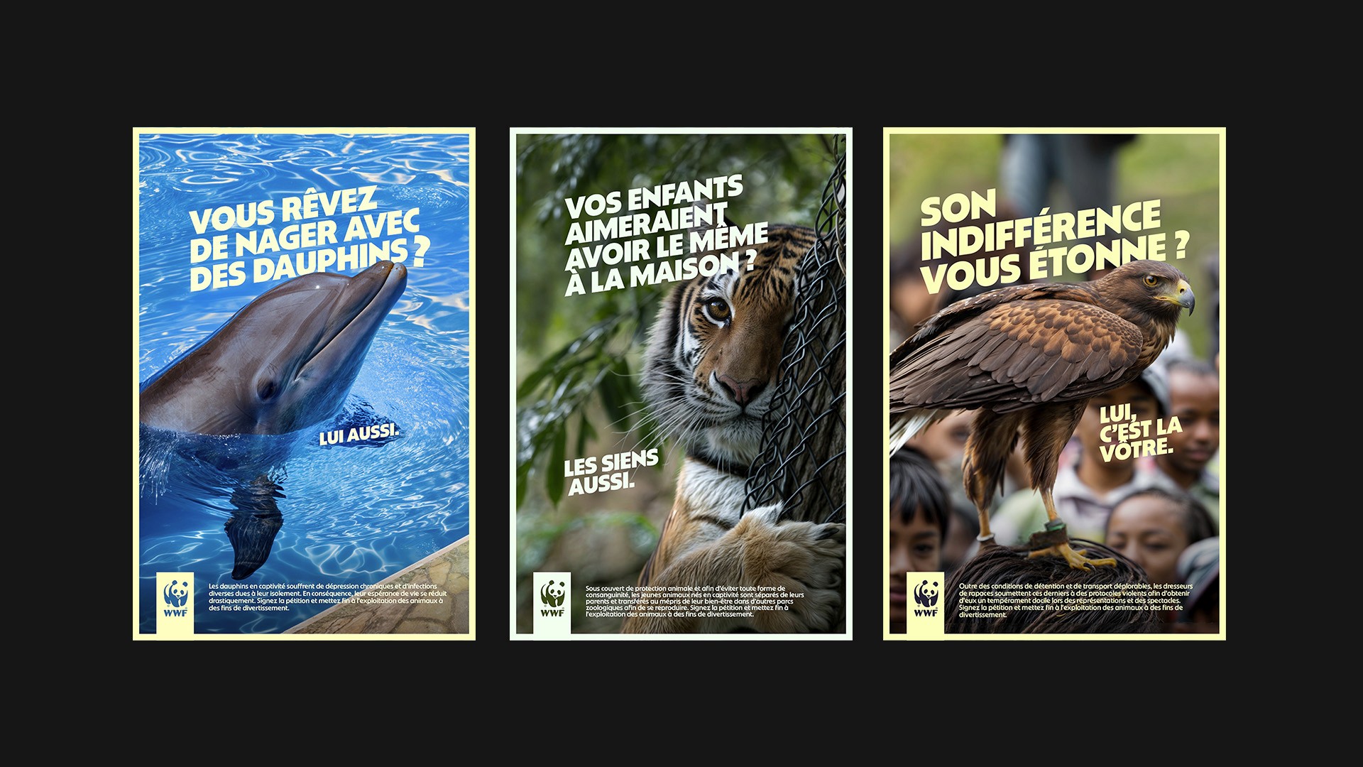 A travers une campagne DOOH, WWF donne la parole aux animaux depuis leur enclos. Ces derniers en profitent pour interroger frontalement l’empathie des spectacteur.ices venant encore en nombre à leurs spectacles.