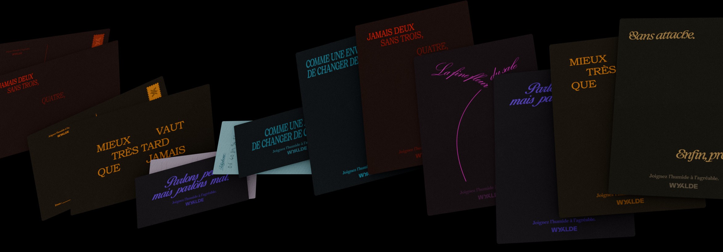 Wyylde fait appel à l'imaginaire de ses futur.e.s adeptes en détournant des expressions populaires afin de leur donner l'aspect de couvertures dignes des plus grands classiques de la littérature érotique.